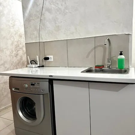 The apartment includes a washing machine for your comfort. A dryer and towels are also included in the bathroom.